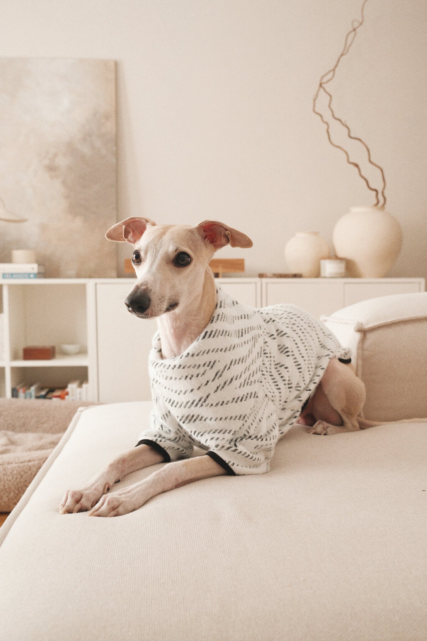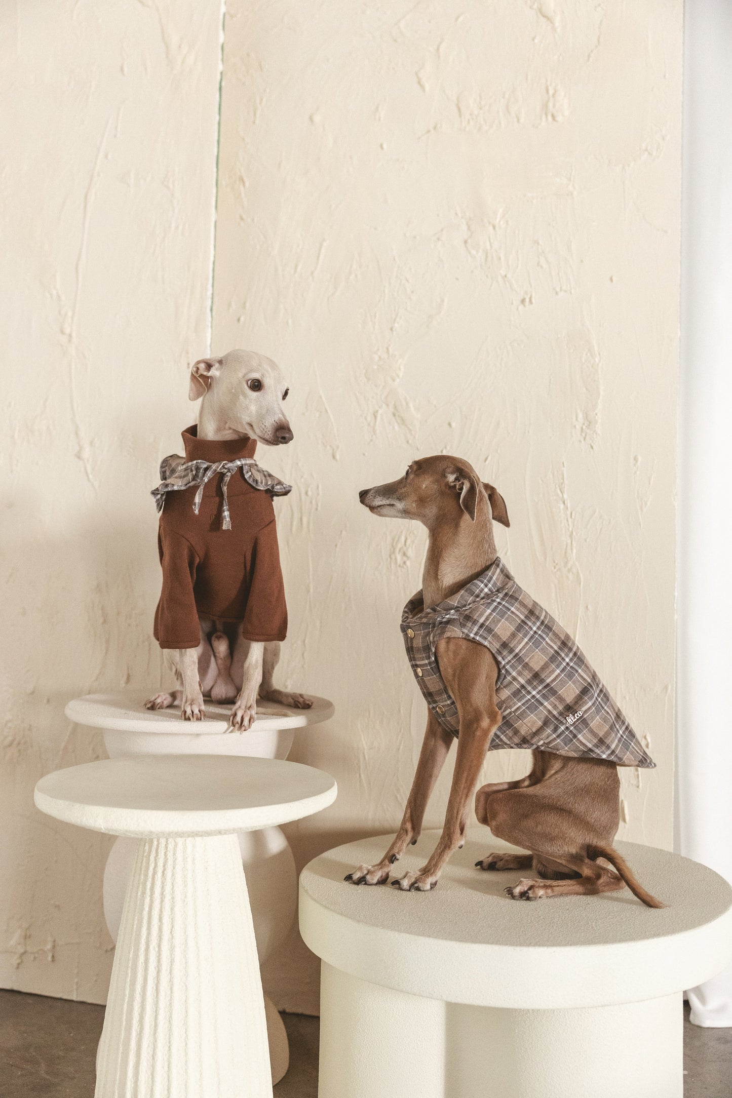 We love the furi coats and have them in sand as well. Fluffy and cozy and the dogs like them a lot! Only thing that does bother a little bit for the dogs is the flexibility of the sleeves especially the ends. The end of the sleeve is sort of hard so my senior dog who is less flexible does have a harder time wearing it. He does enjoy the warmth and coziness a lot though. It’s a bit on the tighter fit side so make sure to measure your dogs!!