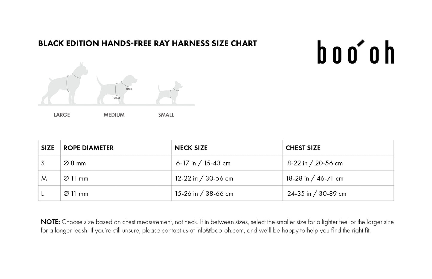 *If you prefer a lighter-weight leash, we recommend the Small-sized harness (suitable for chest sizes up to 22 inches), as it features an 8mm rope thickness compared to the 11mm rope used in the Medium and Large sizes.