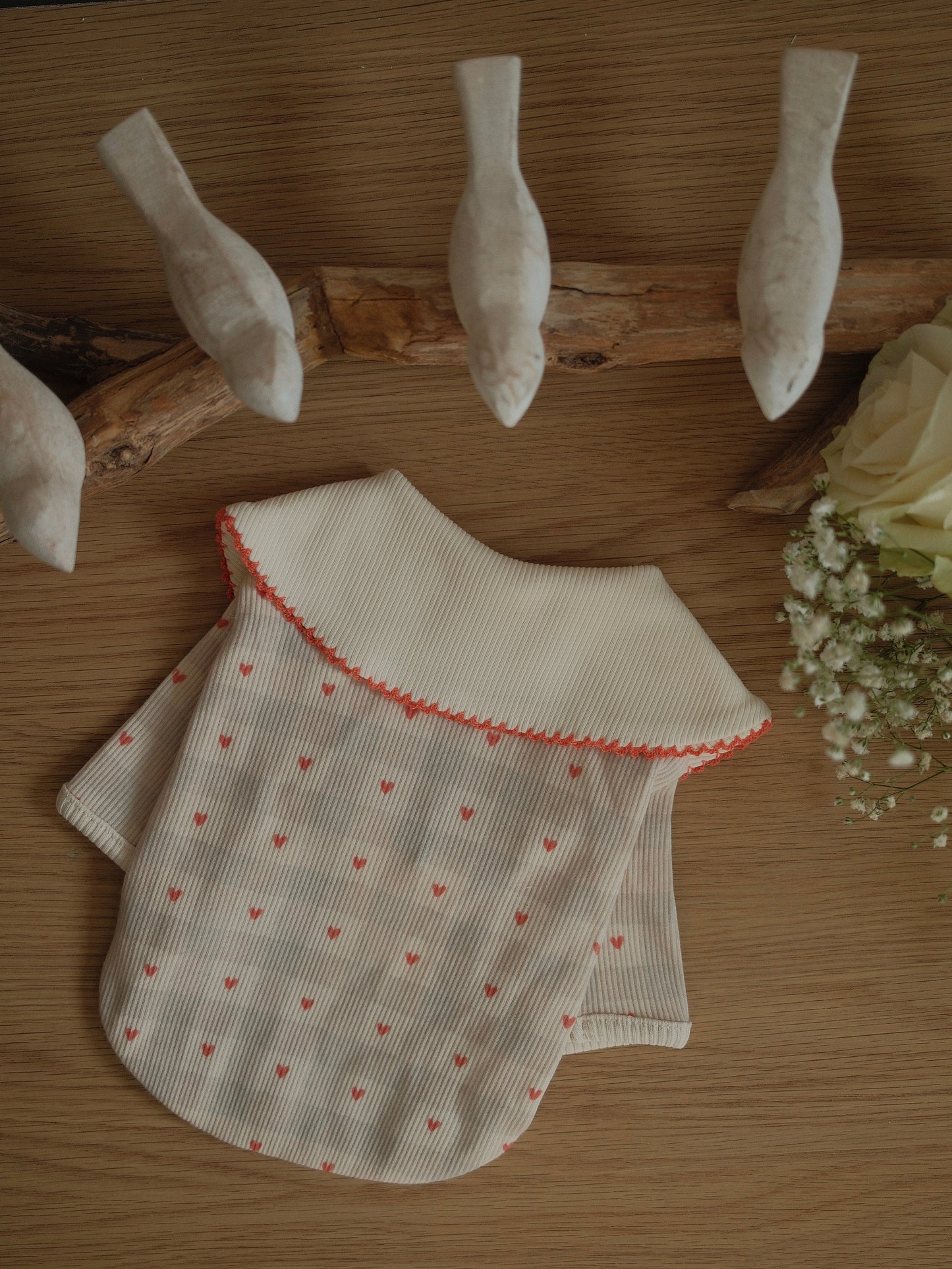 Crafted from 100% cotton rib and printed with tiny hearts using non-toxic, organic dyes, it’s soft, breathable, and made for stylish pups who like a little romance in their wardrobe.