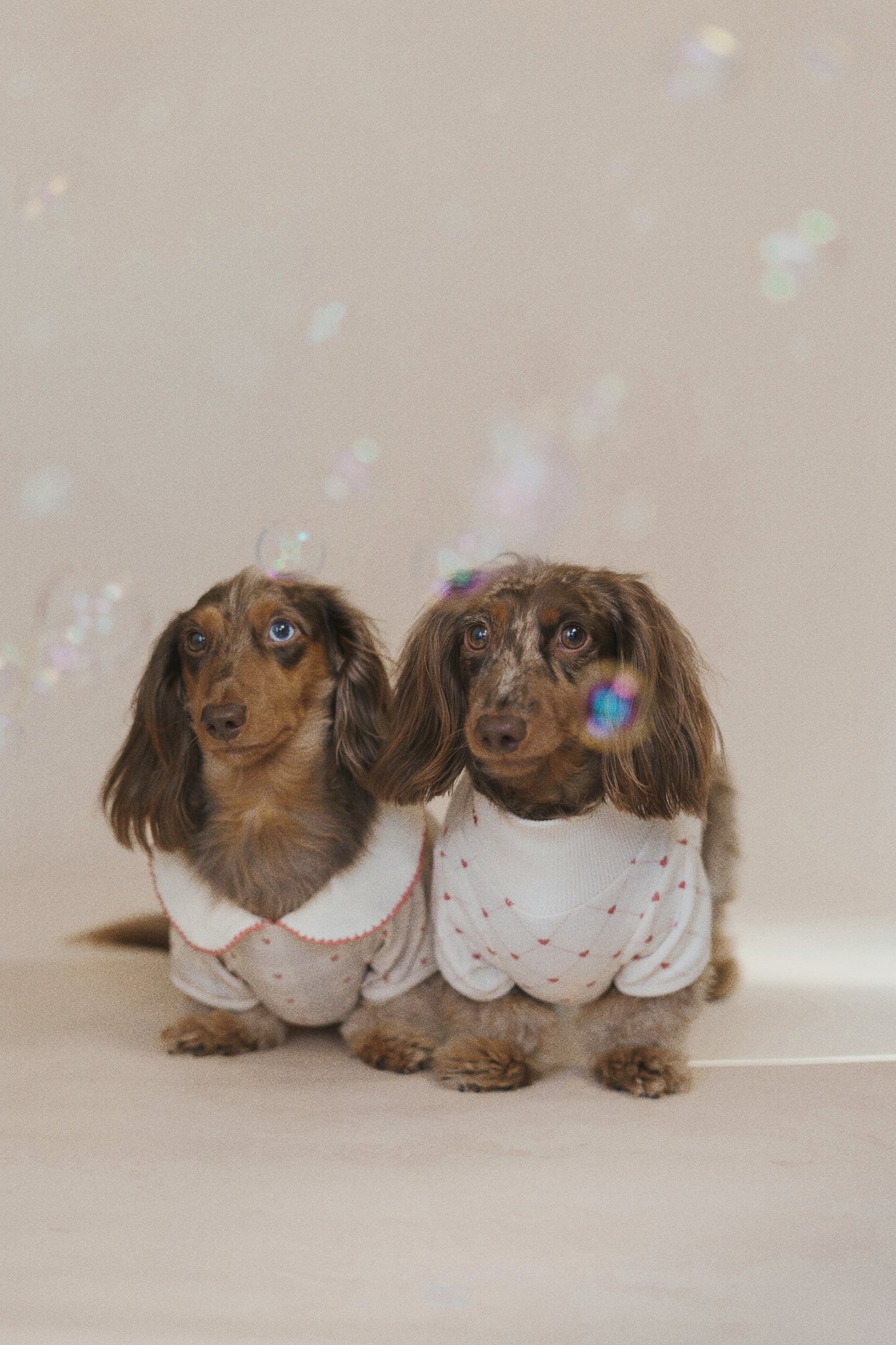 Meet The Lovelette — a timeless blouse for dogs with a soft vintage soul. Featuring an oversized petal collar trimmed in delicate scalloped stitching and finished with a tiny hand-embroidered heart detail, this piece is a love letter to subtle elegance.