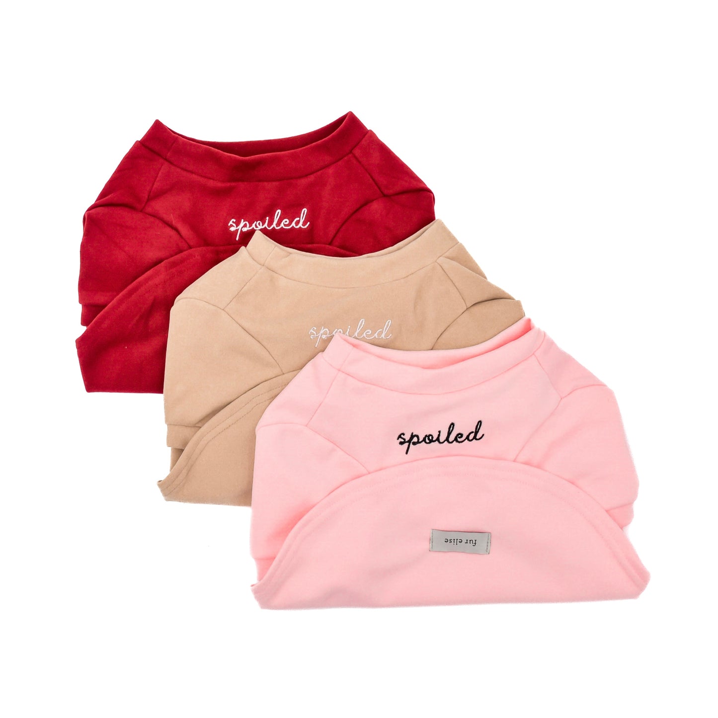 Made for the pets who are truly spoiled (as they should be). The Spoiled Sweetheart Collection features ultra-stretchy pet shirts crafted in buttery fleece fabric for the softest, coziest fit — without feeling bulky. This fabric is lightweight yet warm, with a moisture-wicking finish that helps keep your pet comfy whether they’re snuggling indoors or stepping out for a chilly walk.