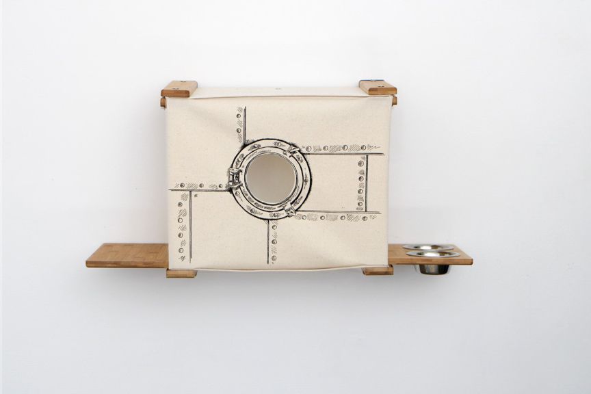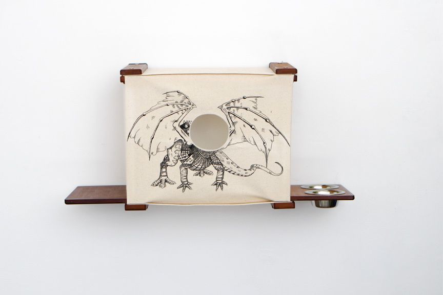 PORTHOLE / BABY DRAGON - circles cut out of the middle. These are nice for playing but also come in handy for your cat to perform living room surveillance. One is a baby dragon, because every cat should get to live at least a brief moment as a mighty ferocious beast. The other option is a porthole from a ship, for all the pirate cats out there.
