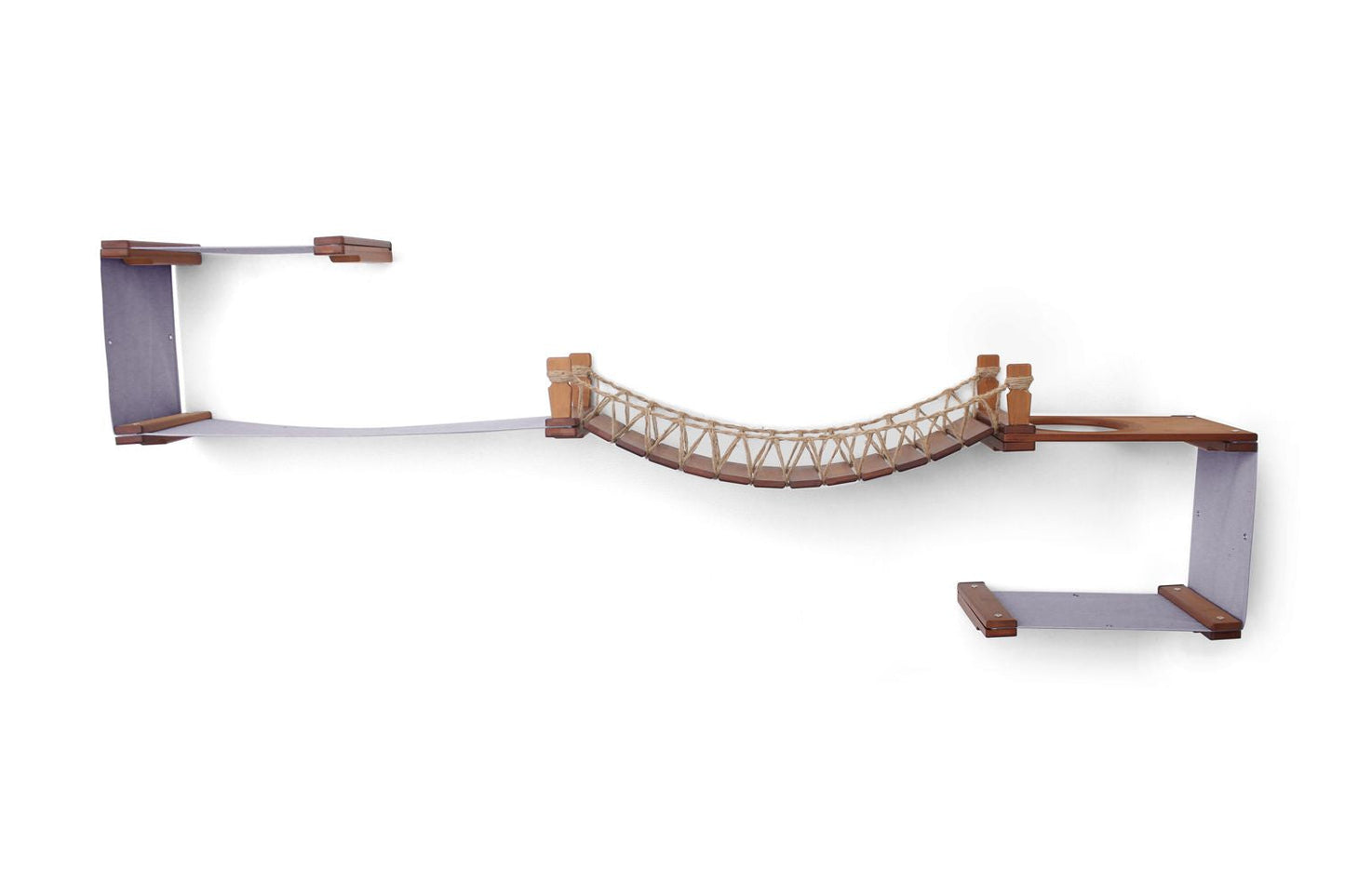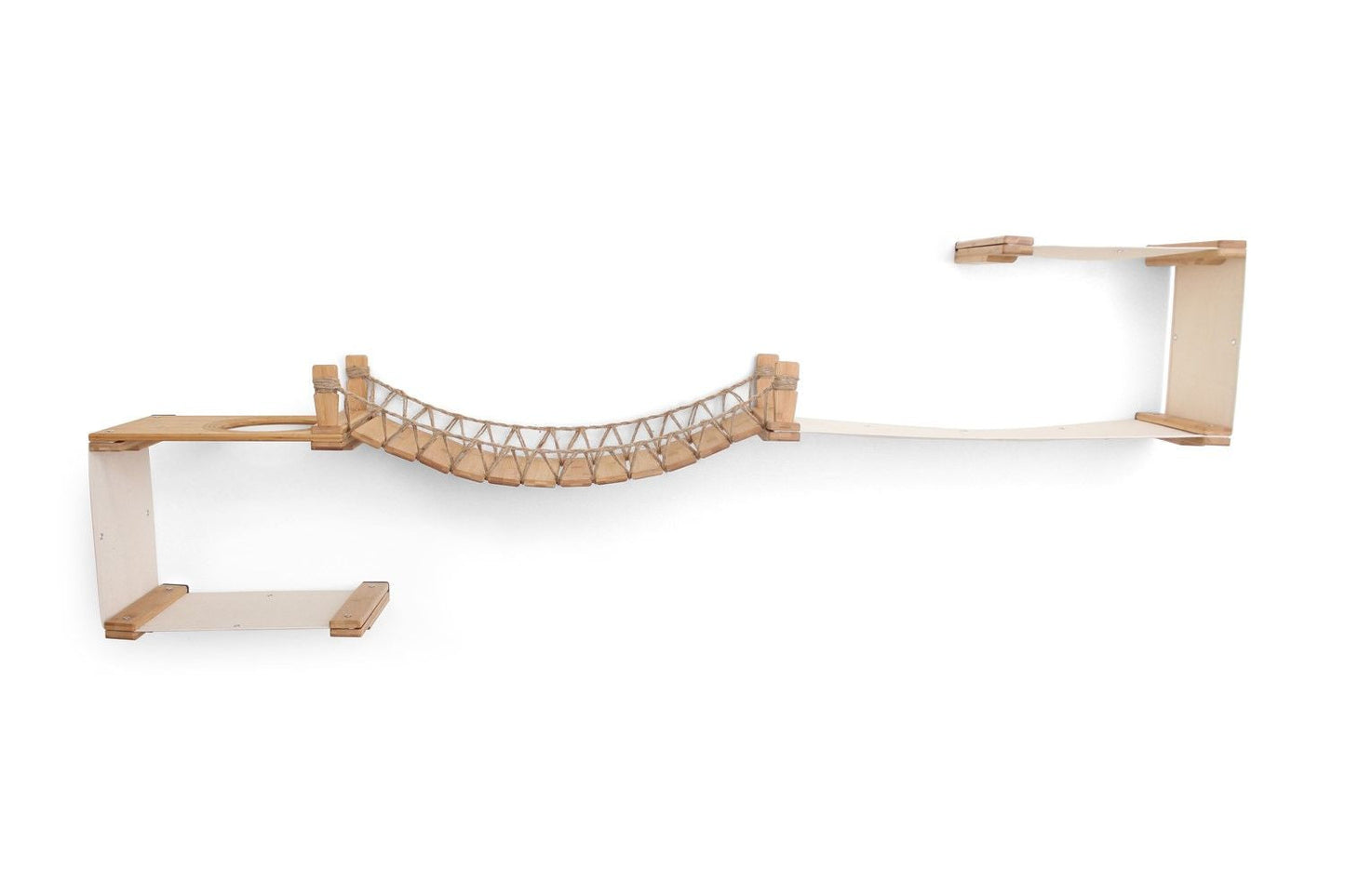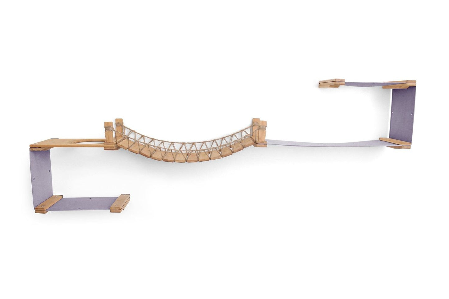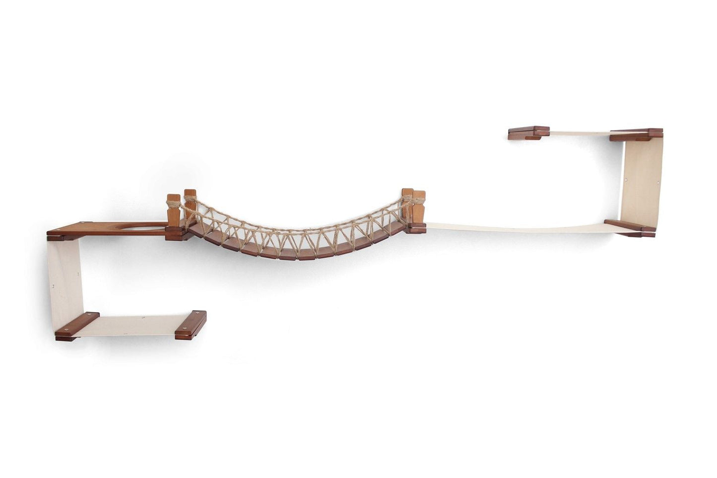 The Canyon is a wide Condo with plenty of areas to rest, with space to run across the wall as well. Having multiple options for how to use the Condo prevents your cats from competing for space and can reduce stress in anxious kitties. In turn, this can help curb unwanted behavior such as fighting or territory marking. The Canyon also features a Cat Bridge, one of our most popular products. The Bridge is perfect for zipping quickly through the Condo or simply lazing about and relaxing.