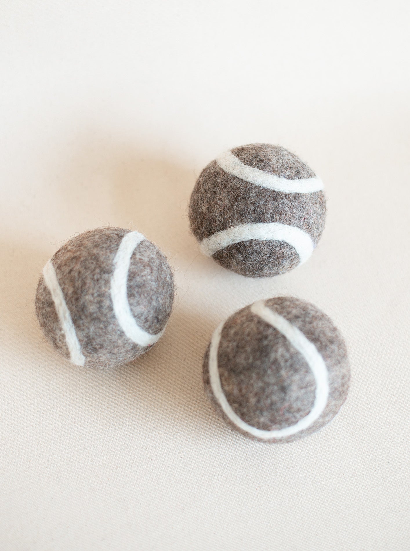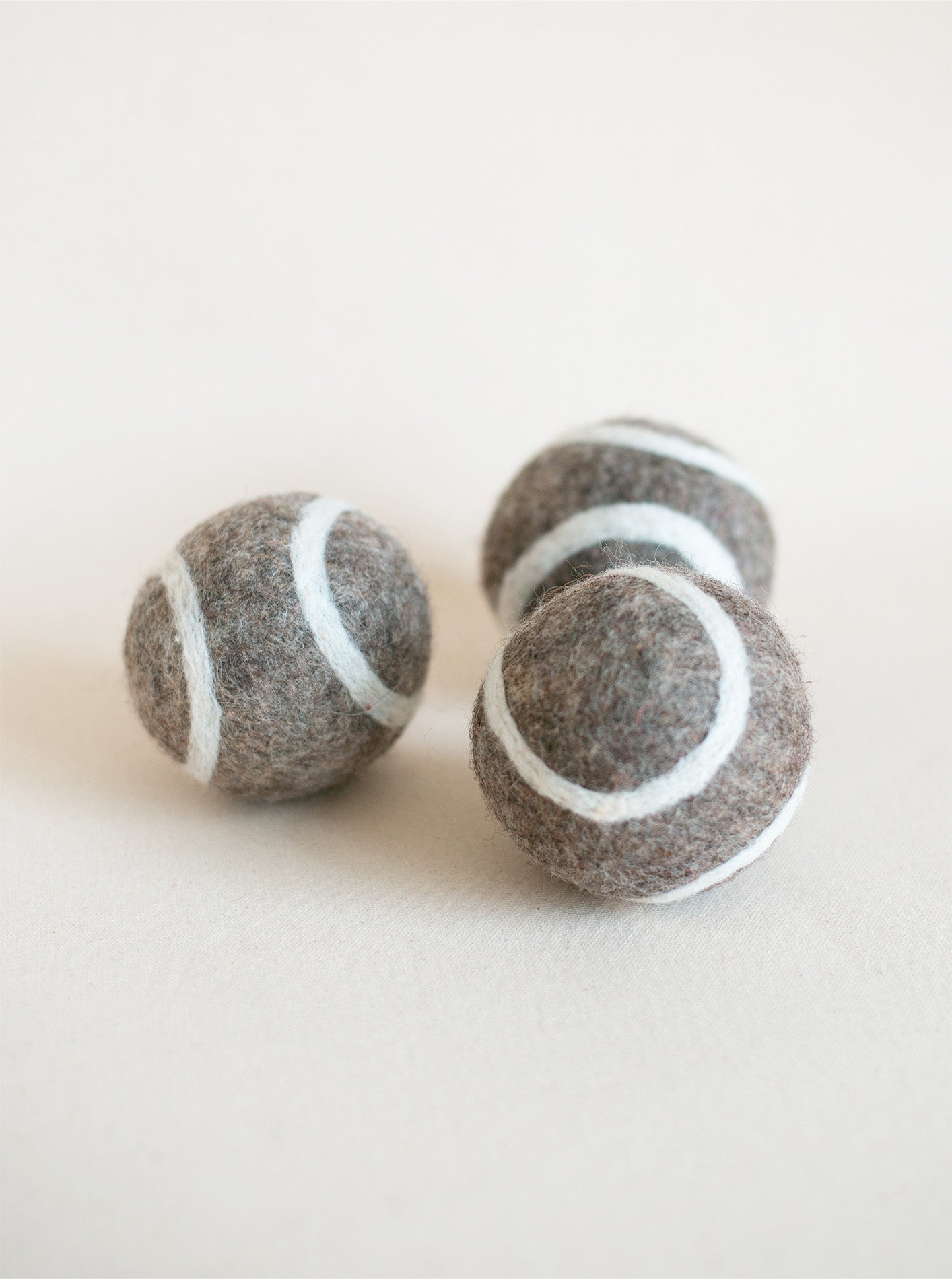 Usamos 100% lana para fabricar pelotas de tenis. Sin núcleo de goma indigerible ni pelusa amarilla/verde.