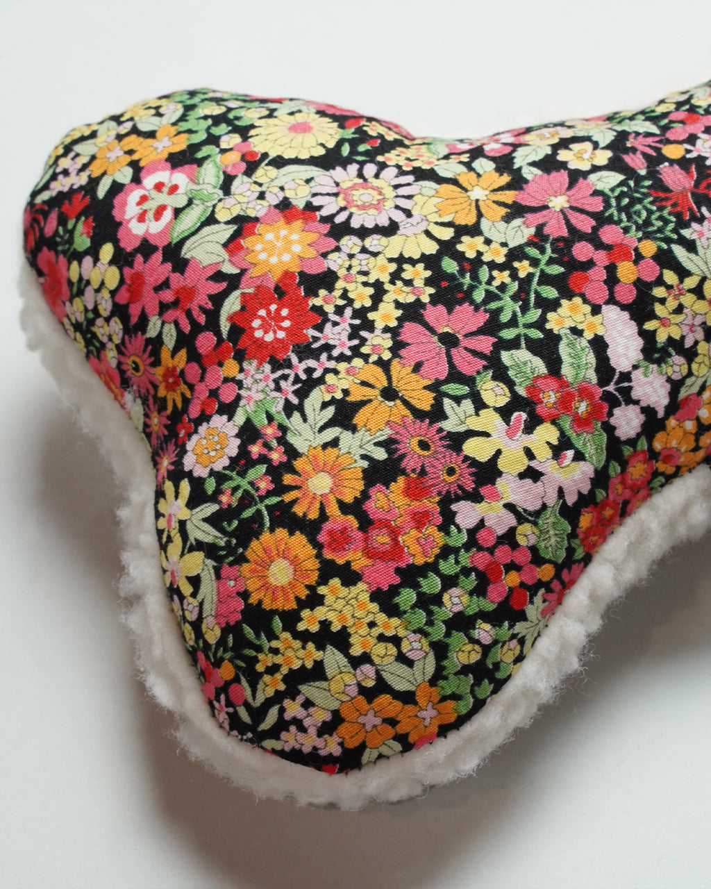 Materiales: 100% algodón floral, 100% poliéster sherpa, flores de lavanda natural, relleno de fibra de poliéster y mucho amor.